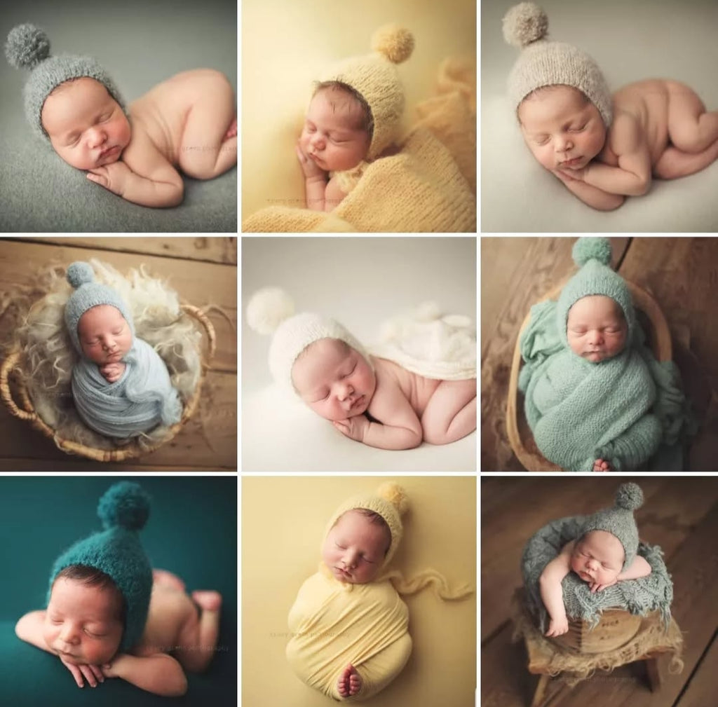 Newborn size. Cozy brushed alpaca. Features a darling attached pom (careful handling, it's delicate! I try to create and attach these as best I can, but, with handling, the strands might come out.) Many lovely color options. If there's a color not shown that you'd like, please don't hesitate to let me know- we can find an alternate fiber that offers the color you're wanting! And if you'd like to add a matching knit wrap, wevan do that too! (: