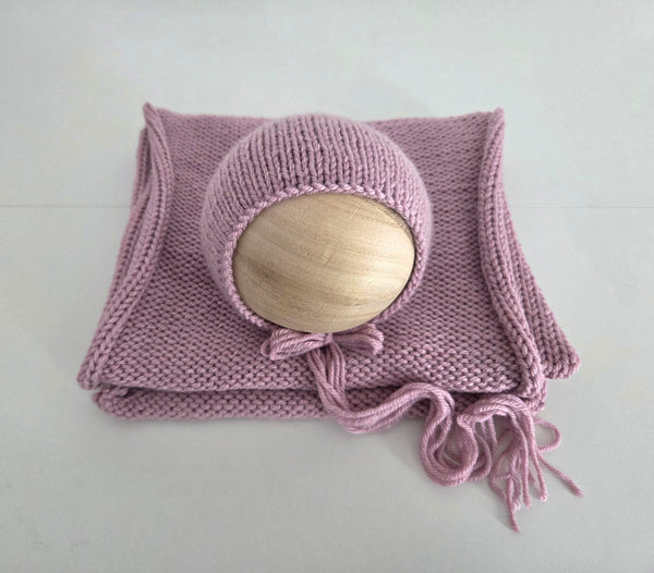 |RTS| Vintage Pink Simple Knit Bonnet + Wrap Set